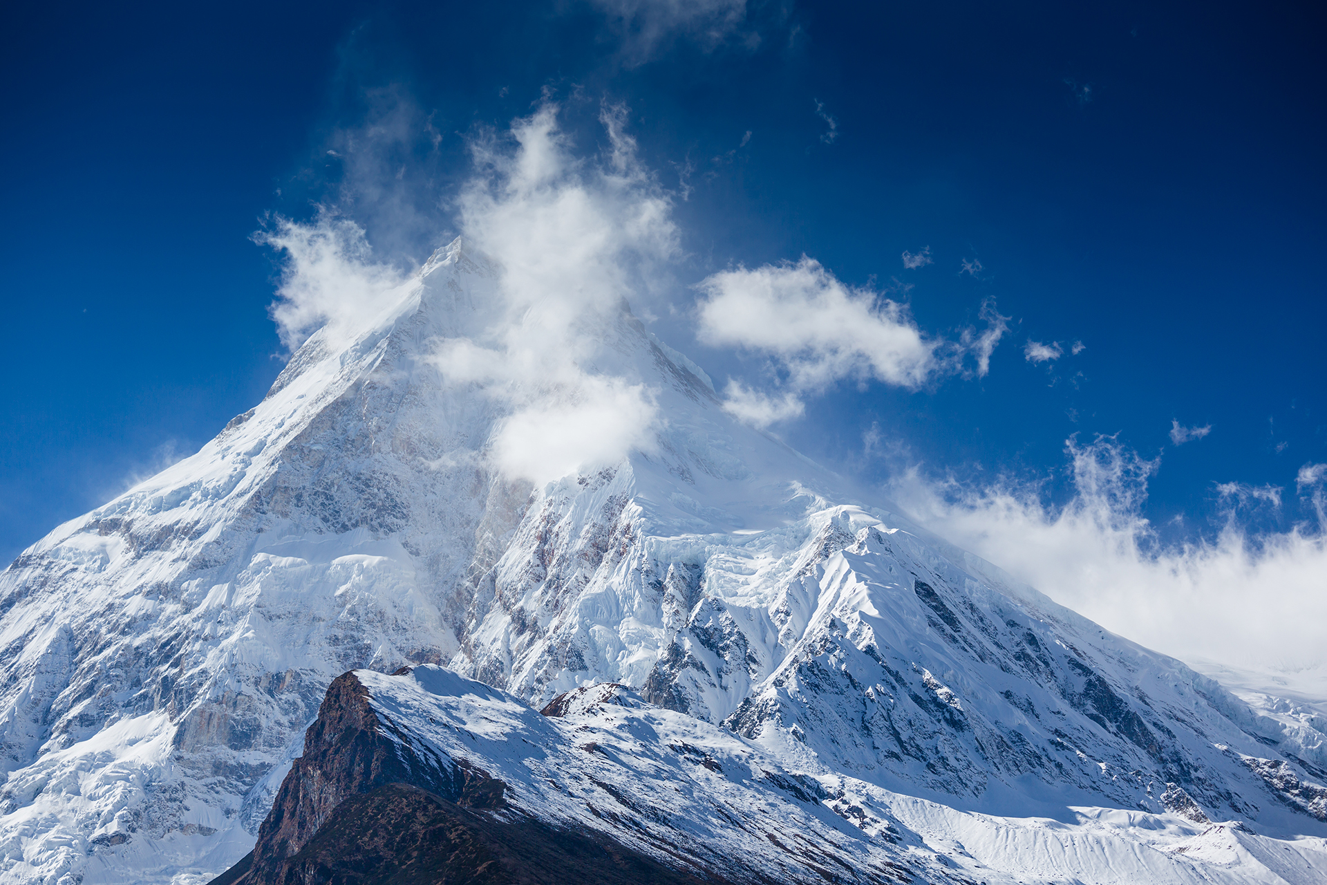 himalayan mountain top above the clouds, annapurna, nepal