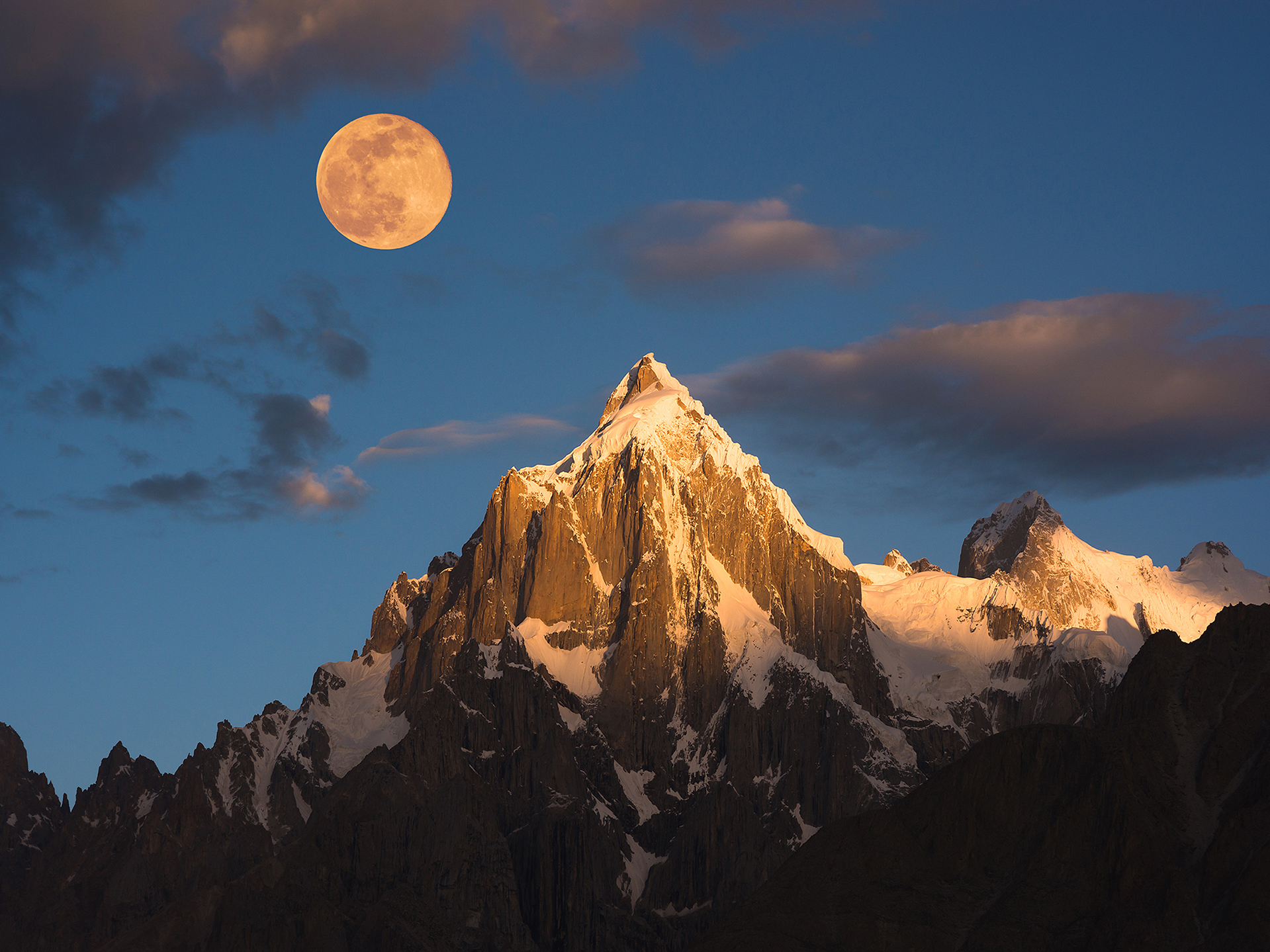 Morning sunrise over Paiyu peak in Karakoram mountain range of Pakistan
