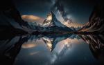 mountains_378Matterhorn Mountain, Alps, Starry Sky, Lake, Switzerland