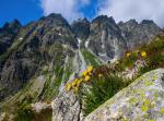 mountains_386Yellow mountain flowers in the rocks, in the background the ridge of the High Tatras. Alpine flora, Slovakia.