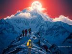 mountains_404A group of Sherpa on the way to the top of mount Everest. A breathtaking landscape capturing the majestic beauty of Mount Everest under the ethereal glow of a blood moon. The scene casting long shadows across the snow-capped peaks.