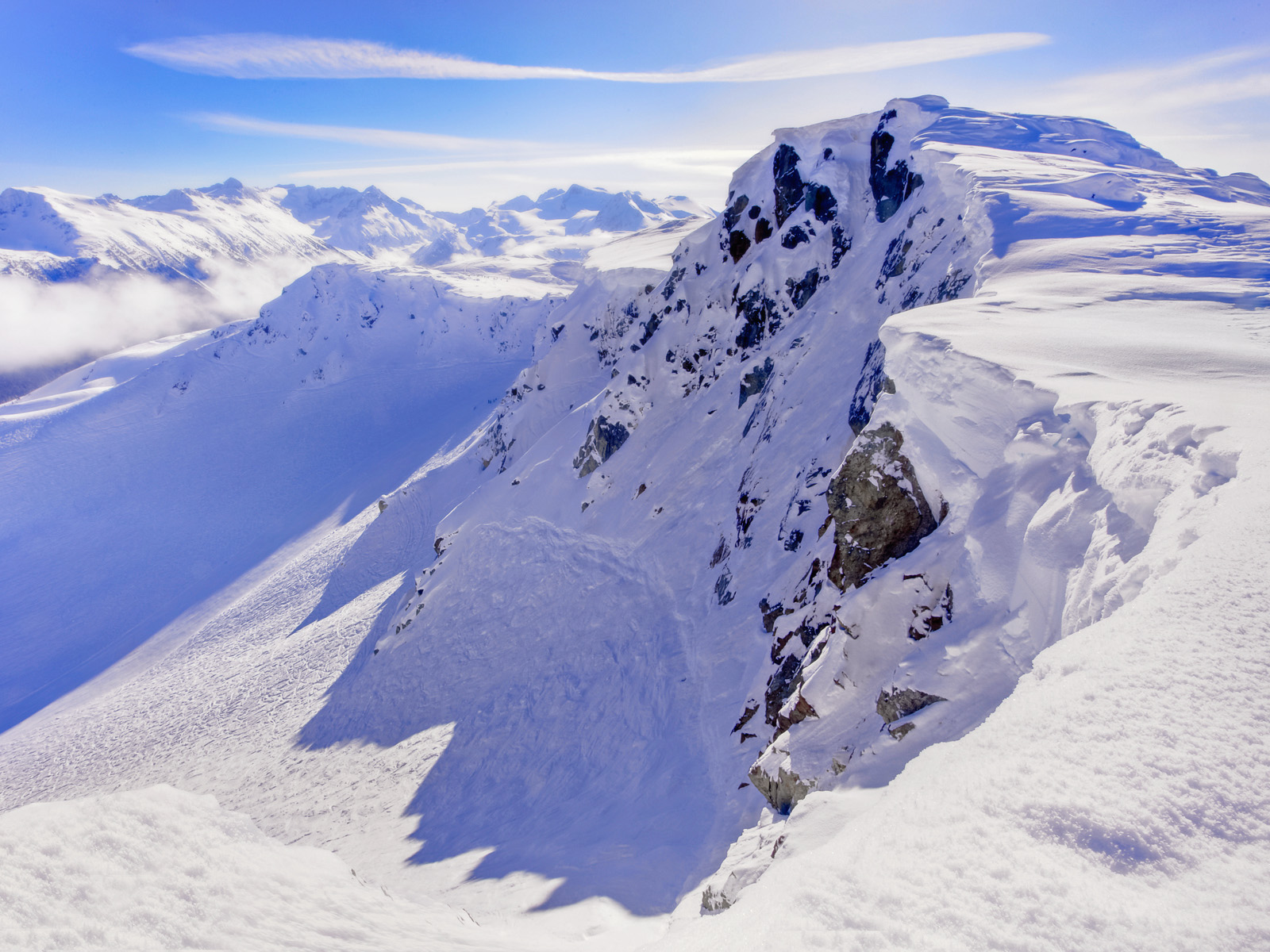 The Chugach Mountains of southern Alaska are the northernmost of the several mountain ranges that make up the Pacific Coast Ranges of the western edge of North America. The range is about 250 miles (402 km) long and 60 miles (97 km) wide, and extends from the Knik and Turnagain Arms of the Cook Inlet on the west to Bering Glacier, Tana Glacier, and the Tana River on the east. It is bounded on the north by the Matanuska, Copper, and Chitina rivers. The highest point of the Chugach Mountains is Mount Marcus Baker, at 13,094 feet (3,991 m), but with an average elevation of 4,006 feet (1,221 m), most of its summits are not especially high. Even so, its position along the Gulf of Alaska ensures more snowfall in the Chugach than anywhere else in the world, an annual average of over 1500 cm (800 in).[2]