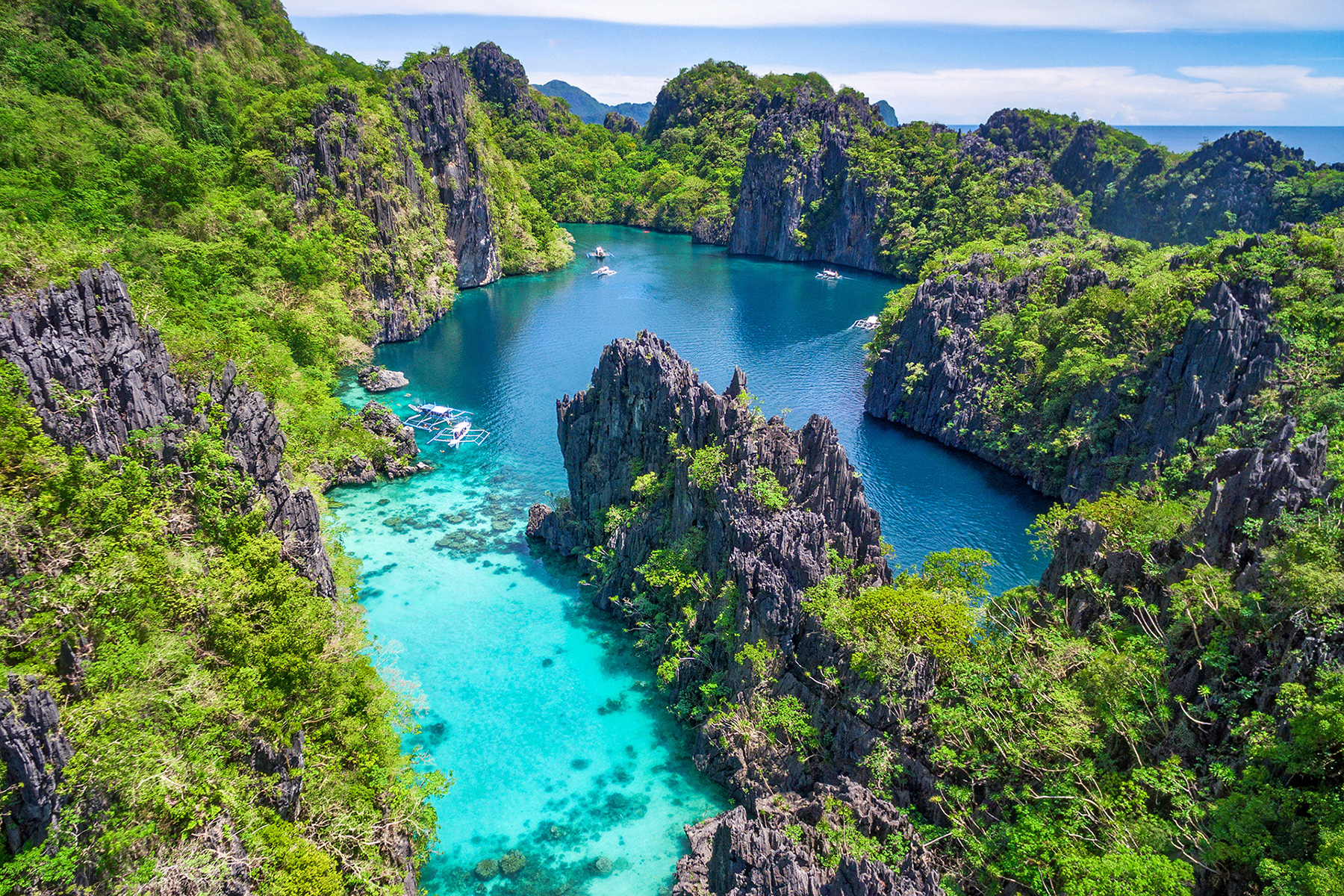 philippines_001El Nido, Palawan, Philippines, aerial view of beautiful lagoon and limestone cliffs.