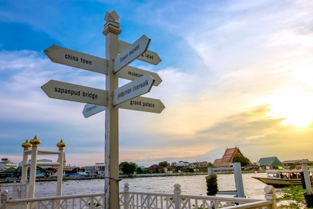 Grand Palace and Wat Phra Kaew at Sunset, Bangkok, Thailand.