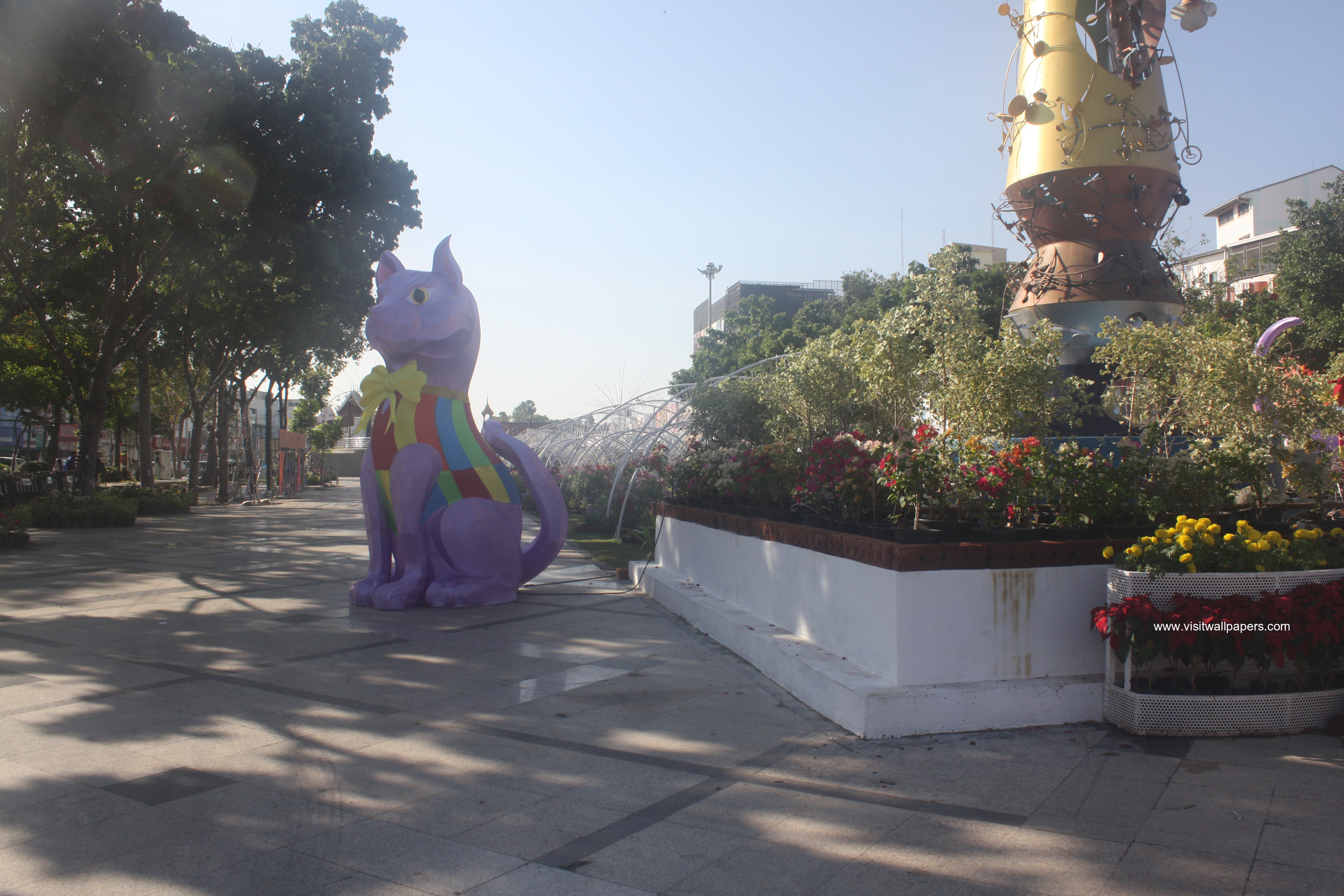 The Dragon Carp Statue of Da Nang is 7.5 meters tall, standing on a 4.3-meters-tall. It’s created by 5 pieces of white marble sourcing from Quy Hop’s stone mountains, nearly 600 km away from Da Nang, and weighs up to 200 tons. It’s carved by a team of 28 sculptors in Non Nuoc Stone Carving Village near the Marble Mountains, of which fine art stone carving tradition has been from the 17th century. On 13th April 2015, after 3 months of production, it moved from the village to its current location.