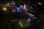 Aerial view of Da Nang city fireworks show over dragon bridge, da nang, vietnam