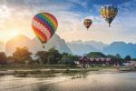 laos_06Hot air balloon over Nam Song river at sunset in Vang vieng, Laos.