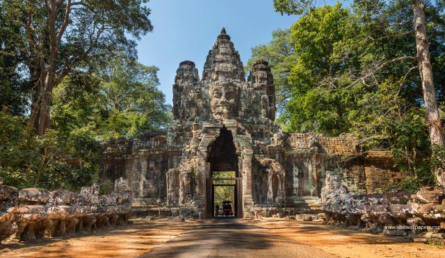 มุมมองทางอากาศของวัดนครวัด, เสียมราฐ, กัมพูชา.