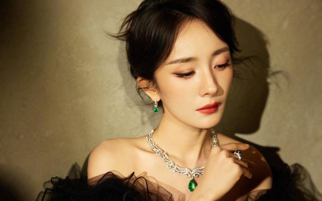 shanghai, china- September 12, 2020: chinese famous actress Yang mi wears black dress posing.