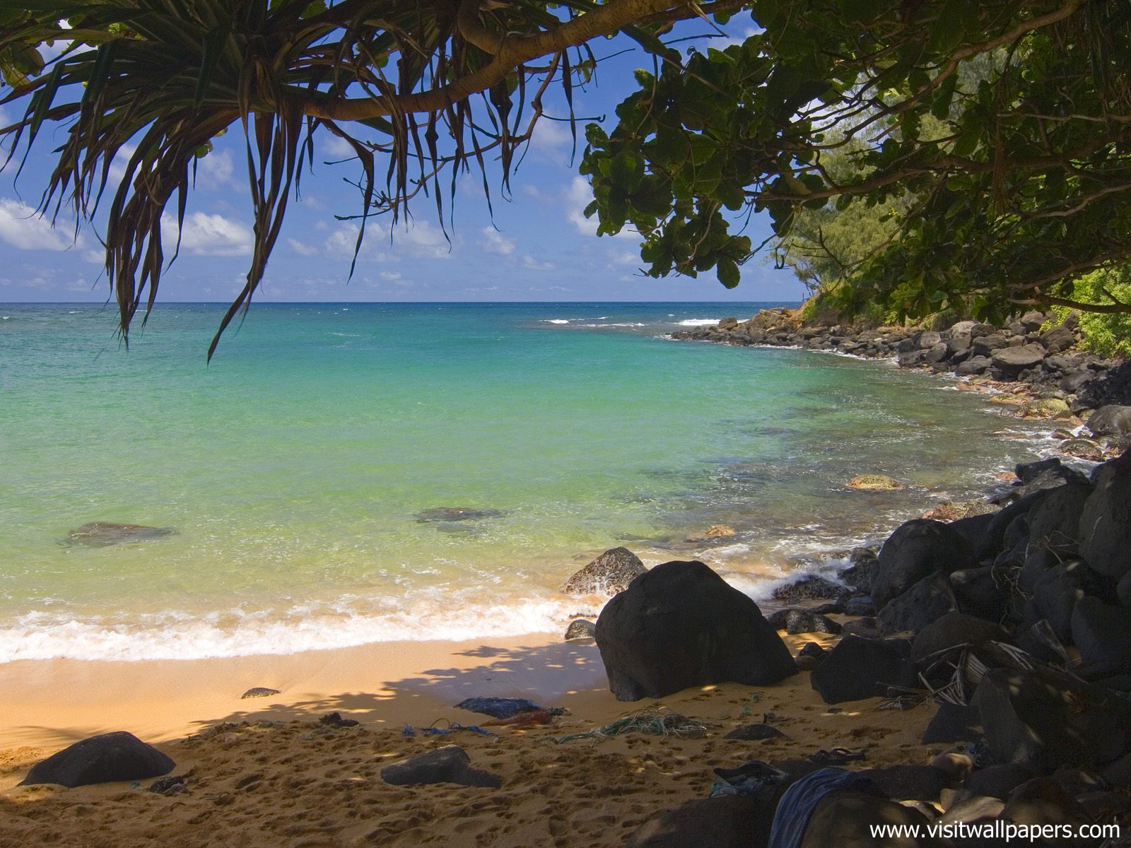 Beaches_109Palm trees at beautiful tropical beach in Hawaii - HD Wallpaper