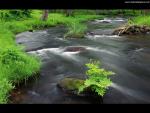 Nature_333Huge Deep forest stream with crystal clear water in the sunshine. Plitvice lakes, Croatia