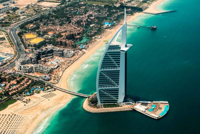 Dubai_081 Aerial View of The Burj al Arab Hotel in Dubai, United Arab Emirates Date: 12/10/2018 Aerial View of The Burj al Arab Hotel in Dubai, United Arab Emirates