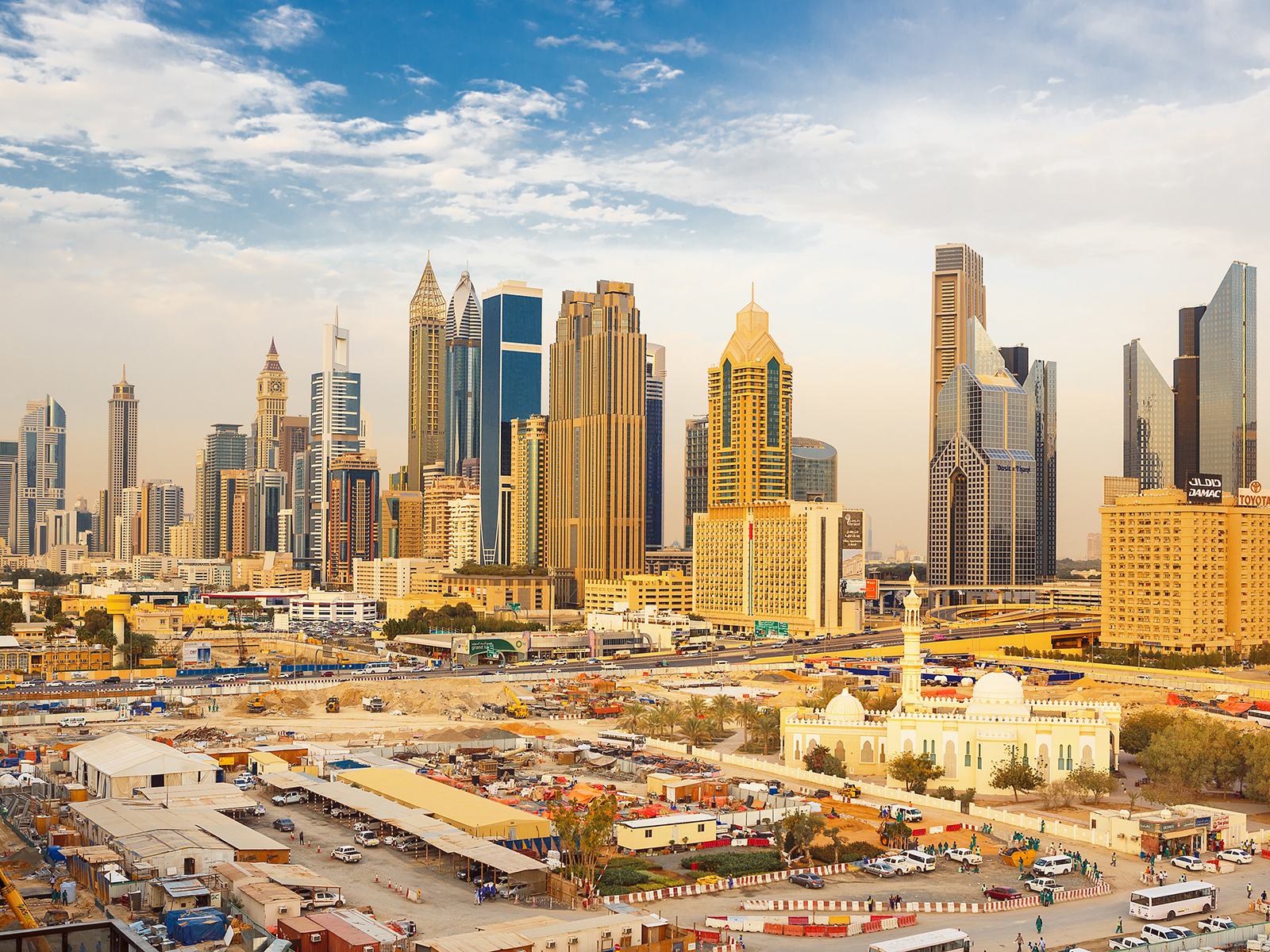 Dubai_119 Dubai skyline with beautiful city close to it's busiest highway on traffic Date: 11/26/2021 Dubai skyline with beautiful city close to it's busiest highway on traffic