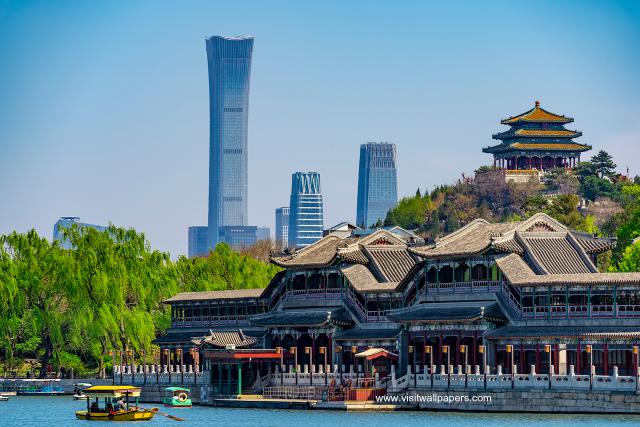 china_873The Beihai Park with China Zun building in background. Modern and ancient architecture in beijing, China