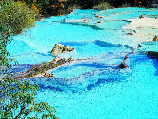 china_945 Huanglong (simplified Chinese: 黄龙; traditional Chinese: 黃龍; pinyin: Huánglóng; lit. 'yellow dragon') is a scenic and historic interest area in the northwest part of Sichuan, China. It is located in the southern part of the Minshan mountain range, 370 ki Date: 5/10/2023 Huanglong (simplified Chinese: 黄龙; traditional Chinese: 黃龍; pinyin: Huánglóng; lit. 'yellow dragon') is a scenic and historic interest area in the northwest part of Sichuan, China. It is located in the southern part of the Minshan mountain range, 370 kilometres (230 mi) north-northwest of the capital Chengdu.[1] This area is known for its colorful travertine pools formed by calcite deposits, especially in Huanglonggou (Yellow Dragon Gully), as well as diverse forest ecosystems, snow-capped peaks, waterfalls and hot springs. Huanglong is also home to many endangered species including the giant panda and the Sichuan golden snub-nosed monkey.[1] In addition, a large population of the endemic orchid species 'Cypripedium plectrochilum' was discovered at the site [2] Huanglong was declared a World Heritage Site by UNESCO in 1992 because of its outstanding travertine formations, waterfalls and limestone formations as well as its travertine terraces and lakes rating among the three most outstanding examples in the world.