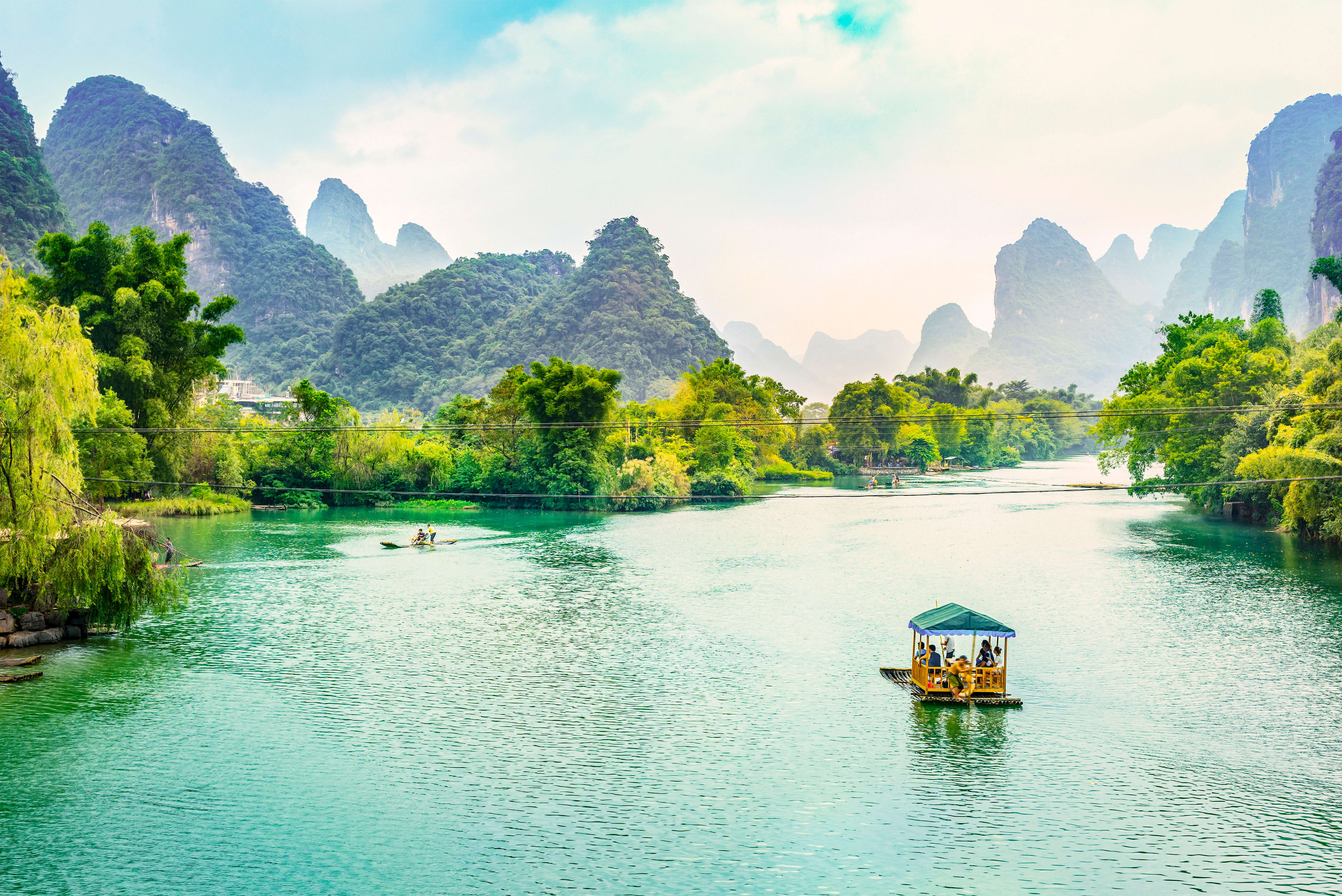 china_948 Guilin landscape, Li River and karst mountains located near Yangshuo County Guilin City, Guangxi Province, China Date: 5/23/2023 Guilin landscape, Li River and karst mountains located near Yangshuo County Guilin City, Guangxi Province, China