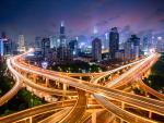 The Nanpu Bridge in Shanghai, China, sister bridge to the Yangpu Bridge, is one of the main bridges in Shanghai.