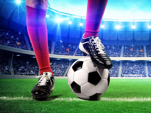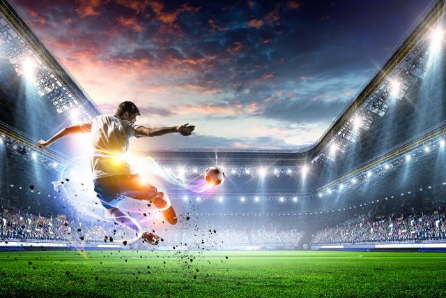 soccer_57Soccer player kicks a ball. Action. Sports event. Night soccer stadium