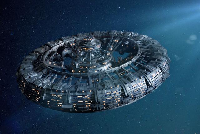sci-fi_141UFO, an alien plate soars in the sky, hovering motionless in the air. Unidentified flying object, alien invasion, extraterrestrial life, space travel, humanoid spaceship mixed medium. An independent report found that NASA could play a crucial role i