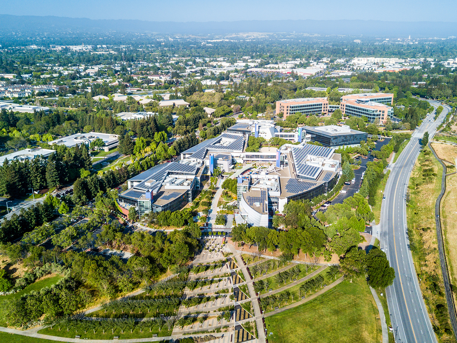 Mountain View, California, USA : Googleplex - Google Headquarters office buildings seen from the above.