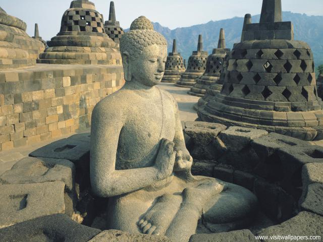 Indonesia_203Borobudur temple, Yogyakarta, Java, Indonesia Borobudur, is a 9th-century Mahayana Buddhist temple in Magelang Regency, not far from the city of Magelang and the town of Muntilan, in Central Java, Indonesia. It is the world's largest Buddhist temple.
