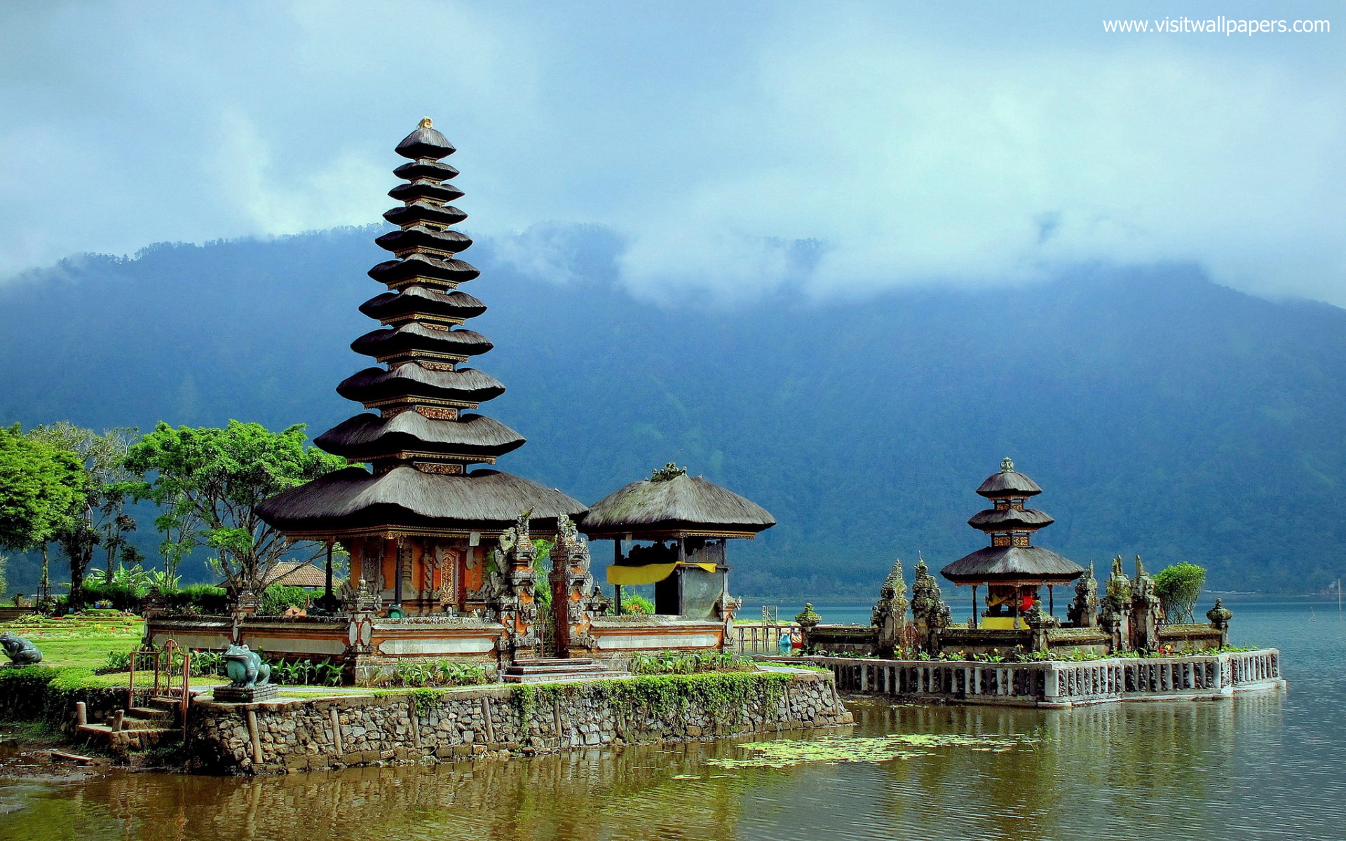 Indonesia_132Unidentified local people walk to Pura Ulun Danu Bratan, Famous Hindu temple on Bratan lake in Bali, Indonesia.