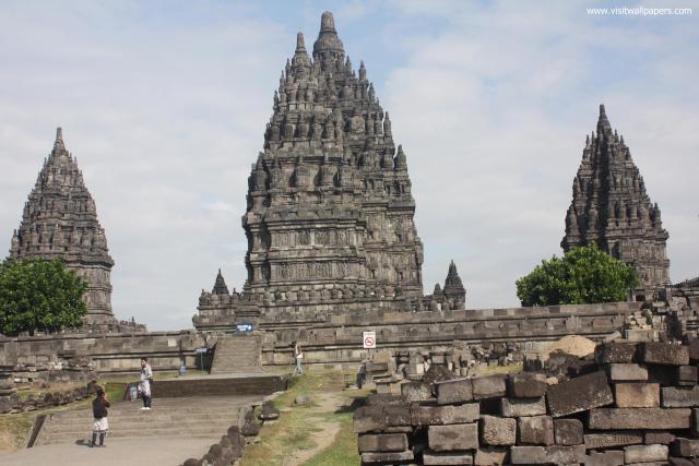 Indonesia_163Candi Prambanan - HD Wallpaper Candi Prambanan or Candi Rara Jonggrang is an 9th-century Hindu temple compound in Central Java, Indonesia, dedicated to the Trimurti, the expression of God as the Creator (Brahma), the Preserver (Vishnu) and the Destroyer