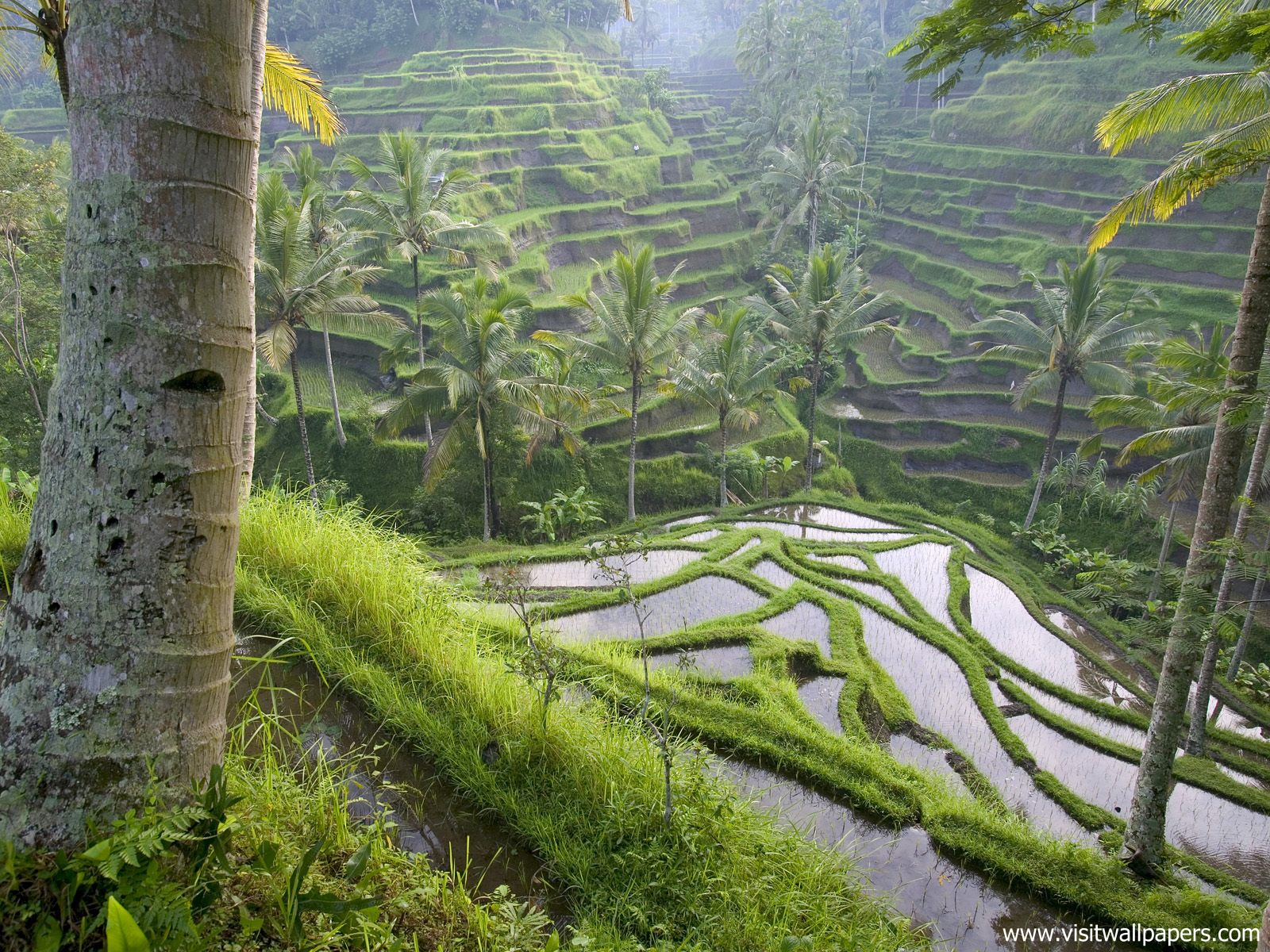 Indonesia_211Bali Rice Terraces. The rice fields terrace are works of art. One of the nicest is the Tegallalang, which is about 15 minutes from the center of Ubud. This method of irrigation is known as Subak.