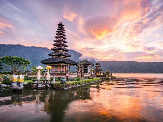 Indonesia_190A beautiful sunrise at a Lake Bratan with Ulun Danu temple, Bali, Indonesia