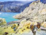 Indonesia_196Mount ijen volcanic crater at sunrise with sulfur fog