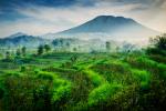 Rainy season in Bali, Indonesia. After the rain, the mountains are misted.