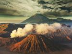 Indonesia_194Active crater of Bromo on the left, volcano Batok in front and volcano Semeru behind, Bromo Tengger Semeru National Park, Java Island, Indonesia
