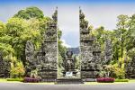 Indonesia_199Aerial view of Bali Handara Gates. The Hindu Temple with ancient gate with pathway in park garden at noon. Hindu architecture landscape background of travel trip and holidays vacation in Indonesia.