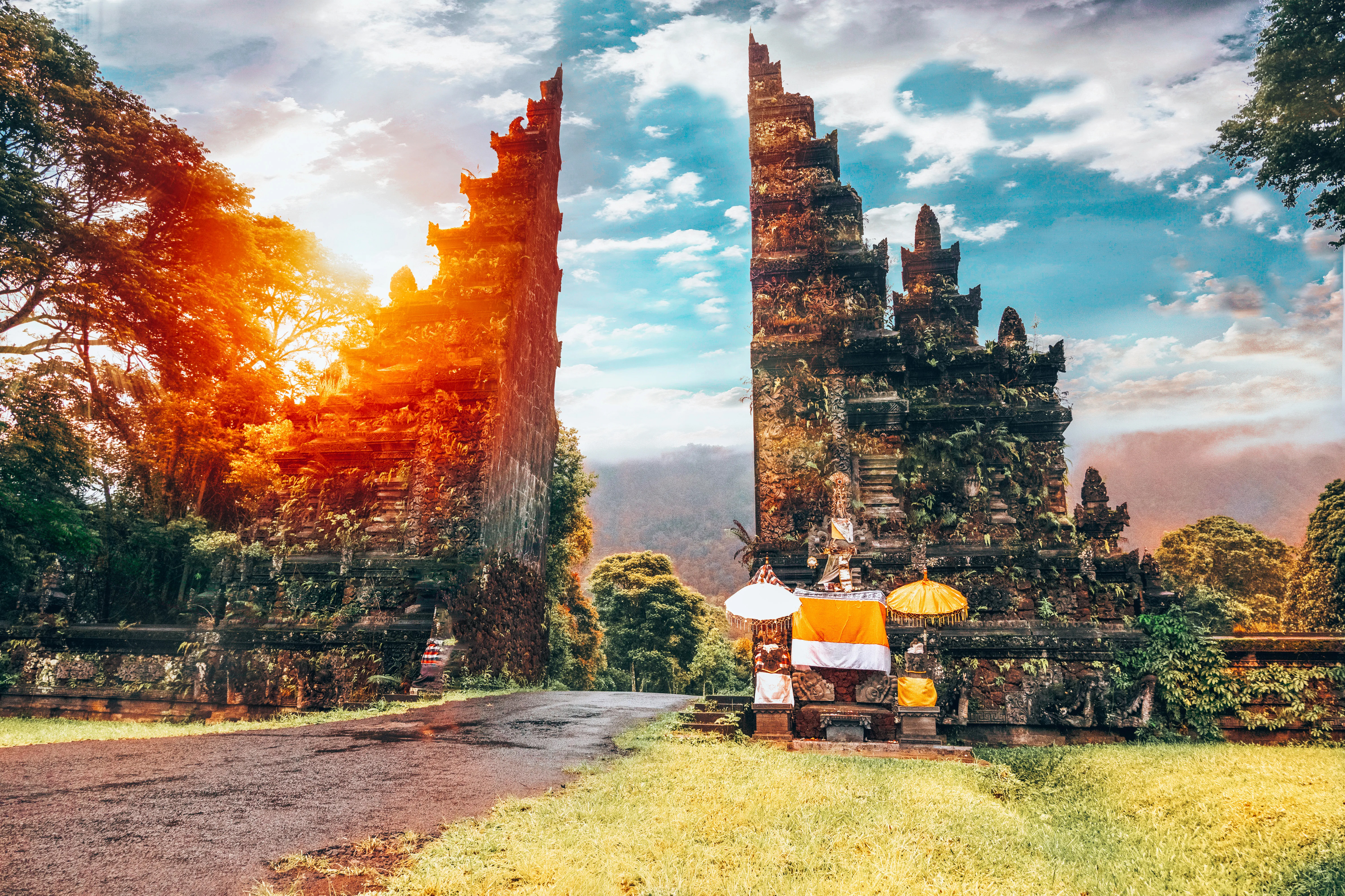 Indonesia_172Gates to one of the Hindu temples in Bali, Indonesia. Rainy season in Bali, Indonesia. After the rain, the mountains are misted.