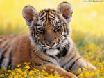 Tiger_158Tiger with yellow flowers. Siberian tiger in beautiful habitat. Amur tiger sitting in the grass.