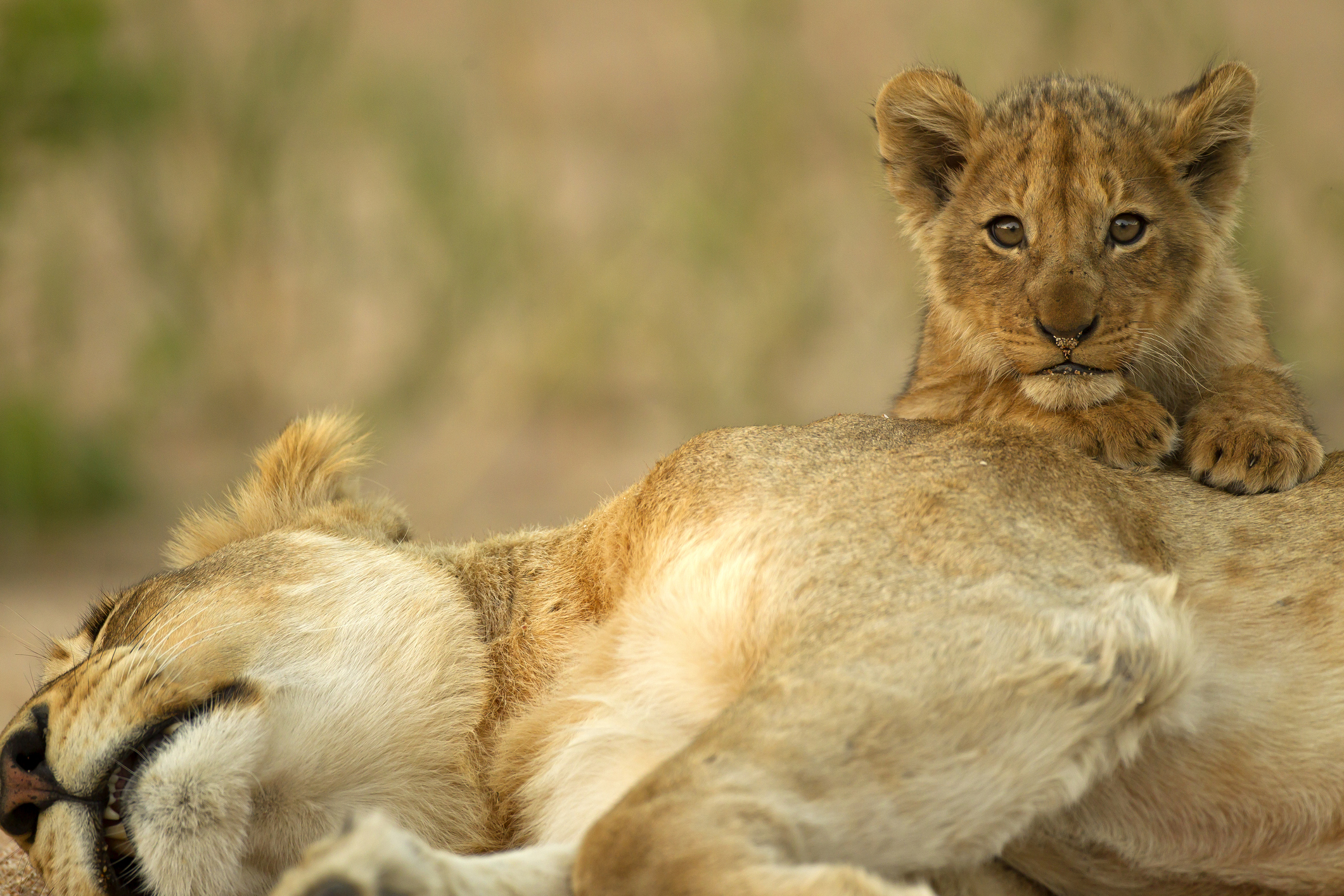 Lion_72Lion cubs sitting on a rock in Masai Mara, Kenya