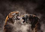 Tiger_172Tiger in wild winter nature running in the snow, wildlife action scene with dangerous animals, cold winter in taiga, Russia, snowflakes with beautiful Siberian tiger Panthera tigris altaica