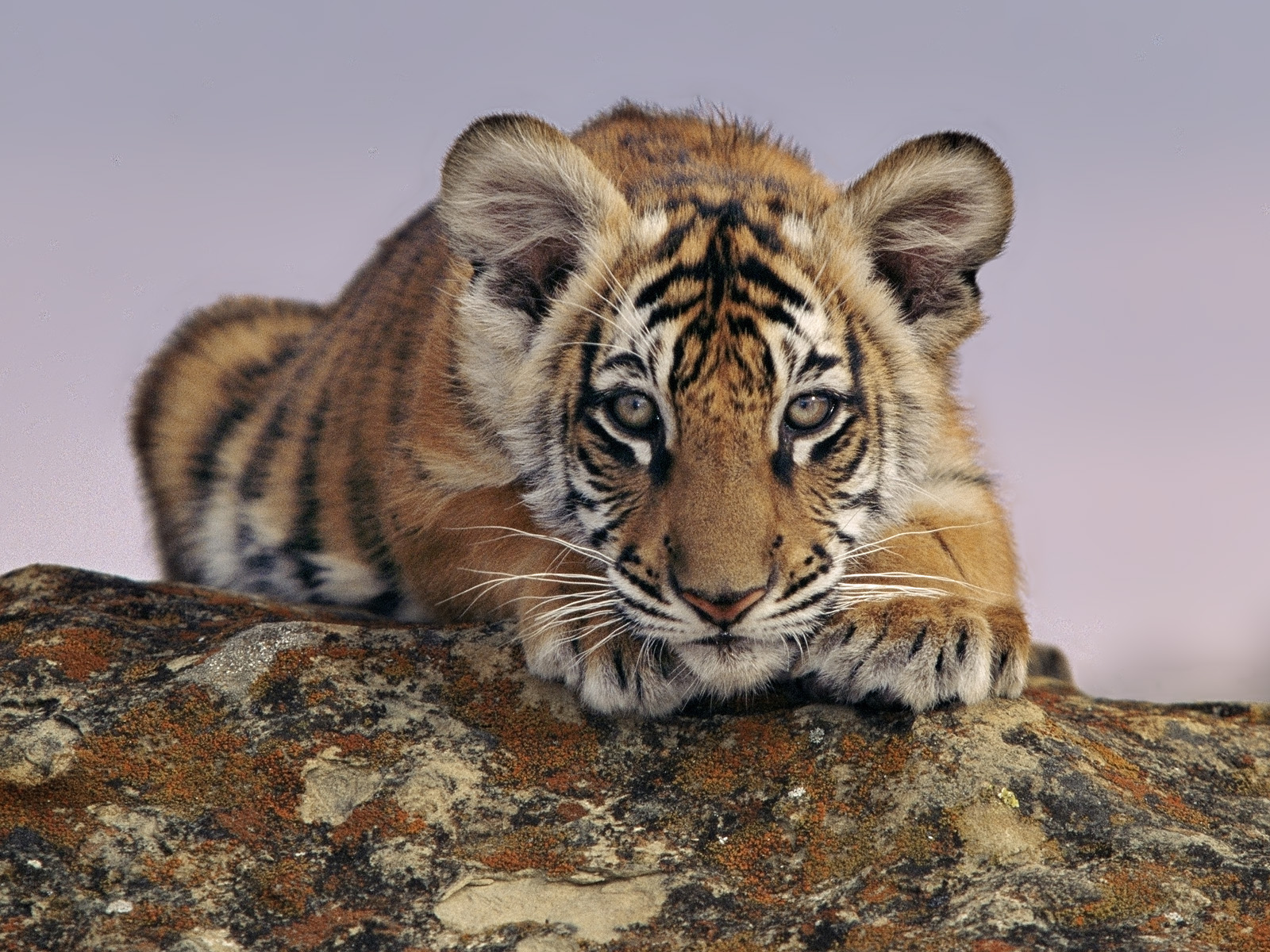 Tiger_160An adult tiger stands on a rock against the backdrop of the evening mountain