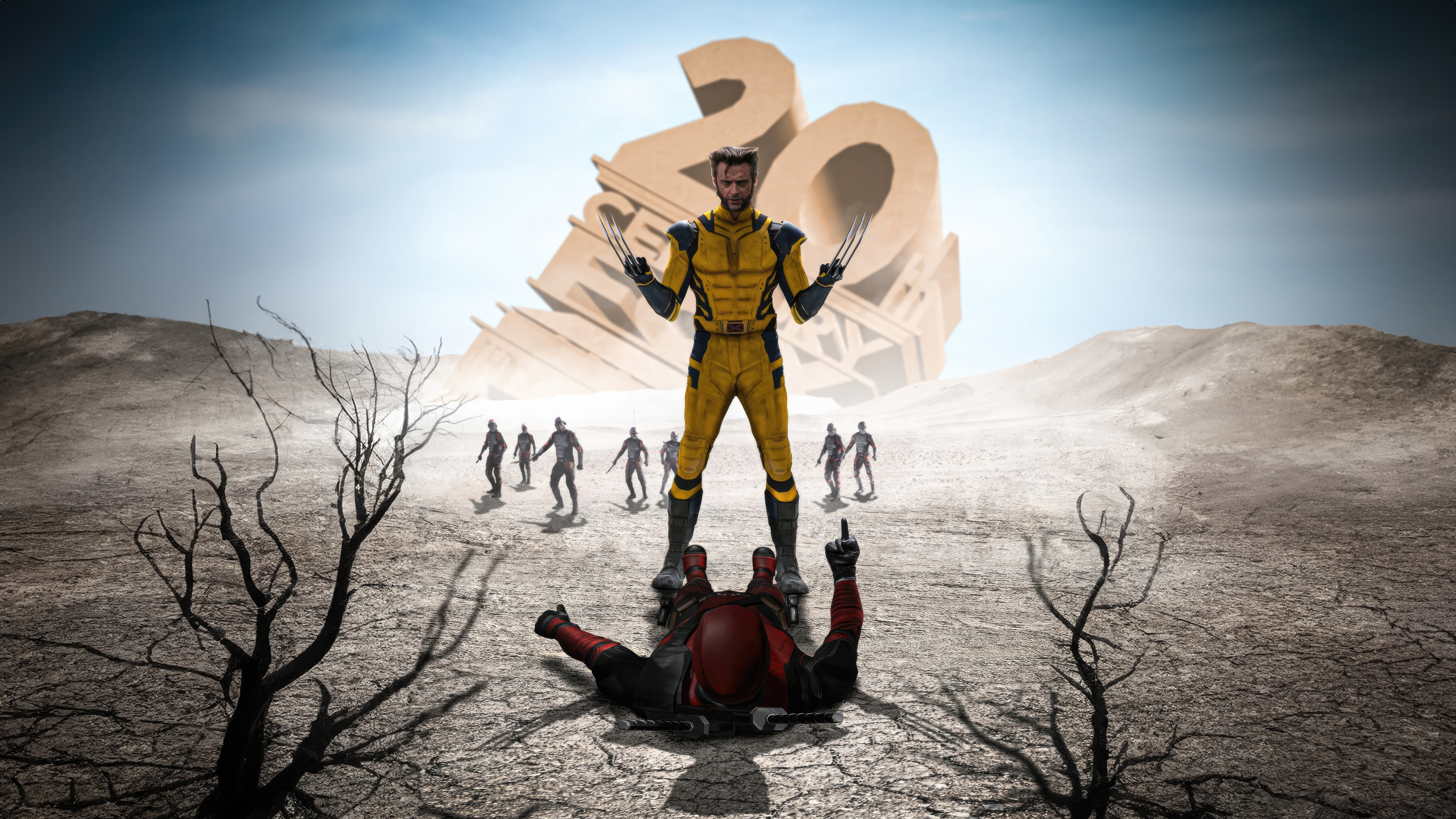 marvel_317 Deadpool & Wolverine is a 2024 American superhero film based on Marvel Comics featuring the characters Deadpool and Wolverine. Produced by Marvel Studios, Maximum Effort, and 21 Laps Entertainment, and distributed by Walt Disney Studios Motion Picture Date: 9/1/2024 Deadpool & Wolverine is a 2024 American superhero film based on Marvel Comics featuring the characters Deadpool and Wolverine. Produced by Marvel Studios, Maximum Effort, and 21 Laps Entertainment, and distributed by Walt Disney Studios Motion Pictures, it is the 34th film in the Marvel Cinematic Universe (MCU) and the sequel to Deadpool (2016) and Deadpool 2 (2018). The film was directed by Shawn Levy from a screenplay he wrote with Ryan Reynolds, Rhett Reese, Paul Wernick, and Zeb Wells. Reynolds and Hugh Jackman respectively star as Wade Wilson / Deadpool and Logan / Wolverine, alongside Emma Corrin, Morena Baccarin, Rob Delaney, Leslie Uggams, Aaron Stanford, and Matthew Macfadyen. In the film, Deadpool learns that the Time Variance Authority is set to destroy his home universe and works with a reluctant Wolverine from another universe to stop them.