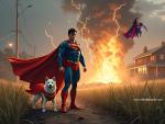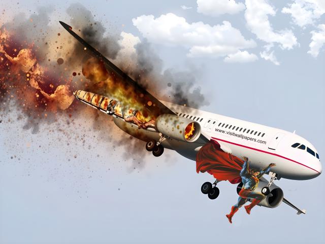 superman_173Superman intercepts a plummeting commercial plane with flames engulfing the fuselage, effortlessly lifting it with superhuman strength, guided by precise control.
