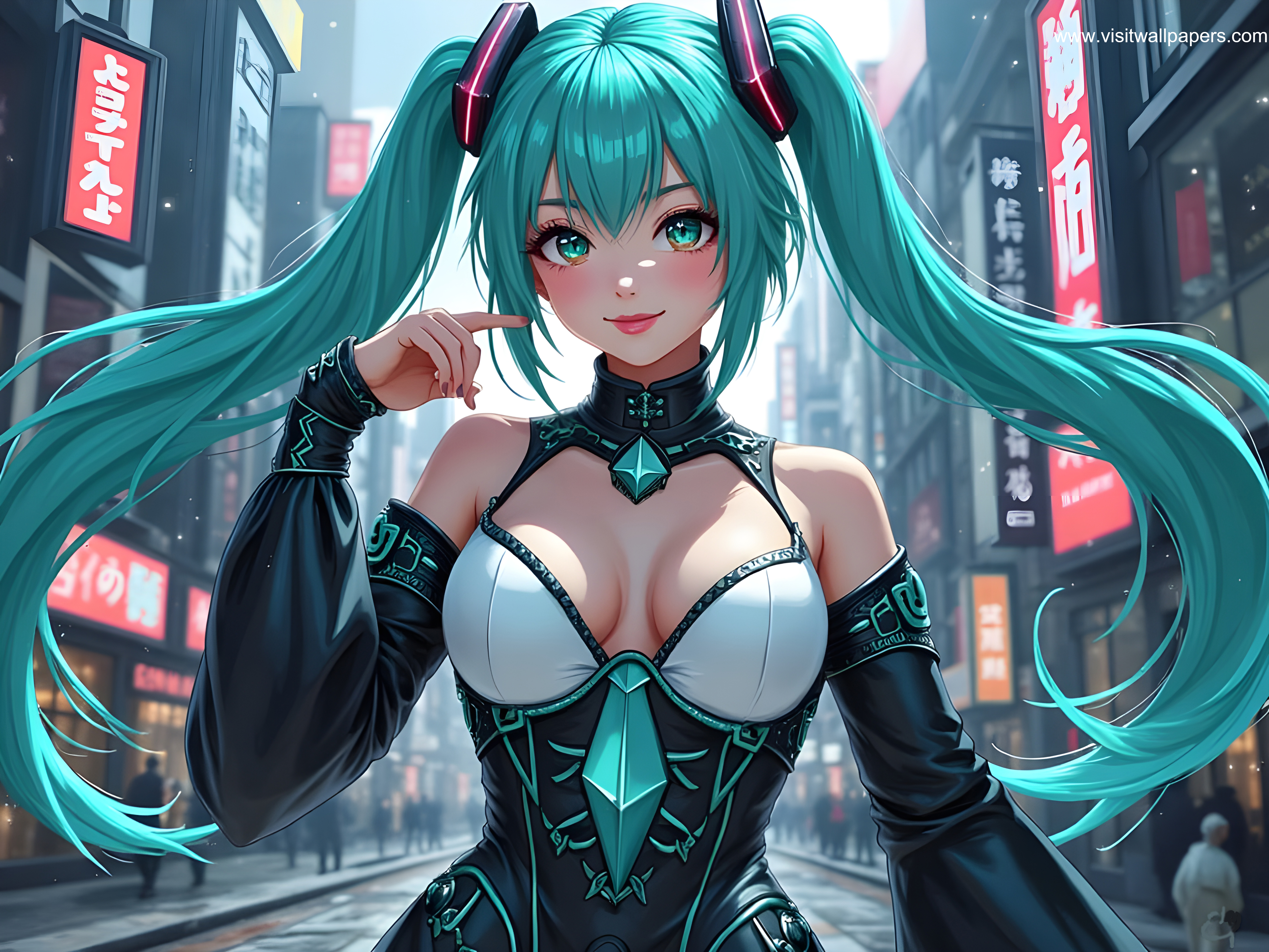 Hatsune Miku (Japanese: 初音ミク, [hatsɯne miꜜkɯ]), sometimes called Miku Hatsune, officially code-named CV01, is a Vocaloid software voicebank developed by Crypton Future Media and is its official mascot character, being depicted as a sixteen-year-old girl with long, turquoise twintails. Miku's personification has been marketed as a virtual idol, and has performed at live virtual concerts onstage as an animated holographic projection (rear-cast projection on a specially coated glass screen).