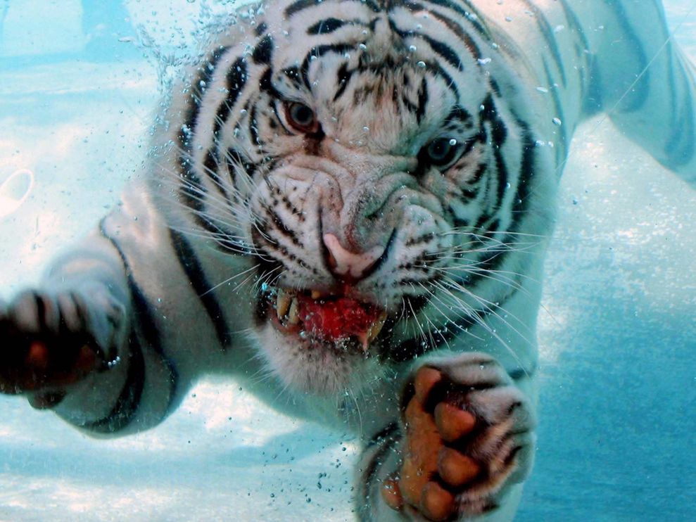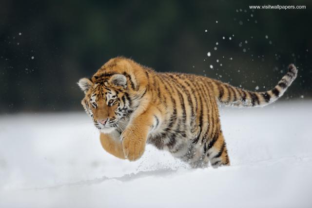 Tiger_172Tiger in wild winter nature running in the snow, wildlife action scene with dangerous animals, cold winter in taiga, Russia, snowflakes with beautiful Siberian tiger Panthera tigris altaica