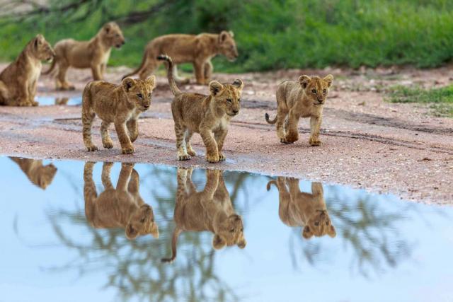 Lion_80Two small baby lions running at full speed near river in Ndutu, Tanzania.