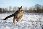 Cougar_16COUGAR MOUNTAIN LION PANTHER Cougar also called Mountain Lion, Panther or Puma crossing a log at a frozen pond in winter, Colorado, USA
