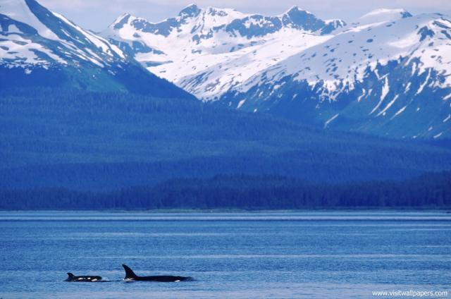 ocean-life-797Killer whale, known as Orca, jumping out of sunset ocean water with splashes, Norwegian fjord in the background