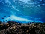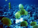 ocean-life-804Damselfish swim in shallow water in Palau's inner lagoon. Palau is known for its beautiful rock islands, prolific marine life, and world class scuba diving and snorkeling.