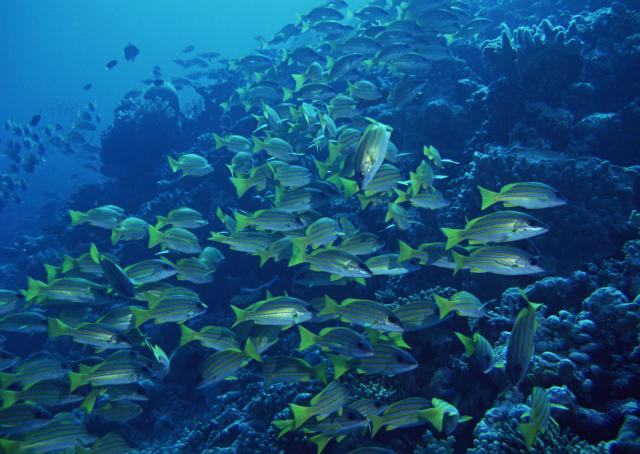 ocean-life-778Underwater coral reef scenery with colorful school of fish.