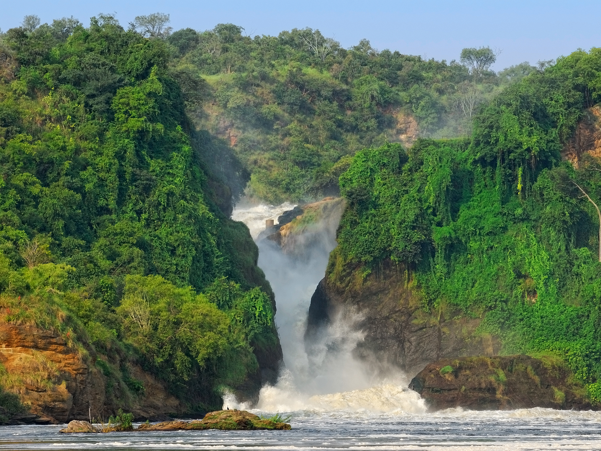 About 2.5 miles inland, the Mkambati river cascades over Horseshoe Falls.