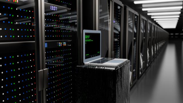 Computer_160 Dark servers data center room with computers and storage systems 3D rendering Date: 7/29/2022 Dark servers data center room with computers and storage systems 3D rendering
