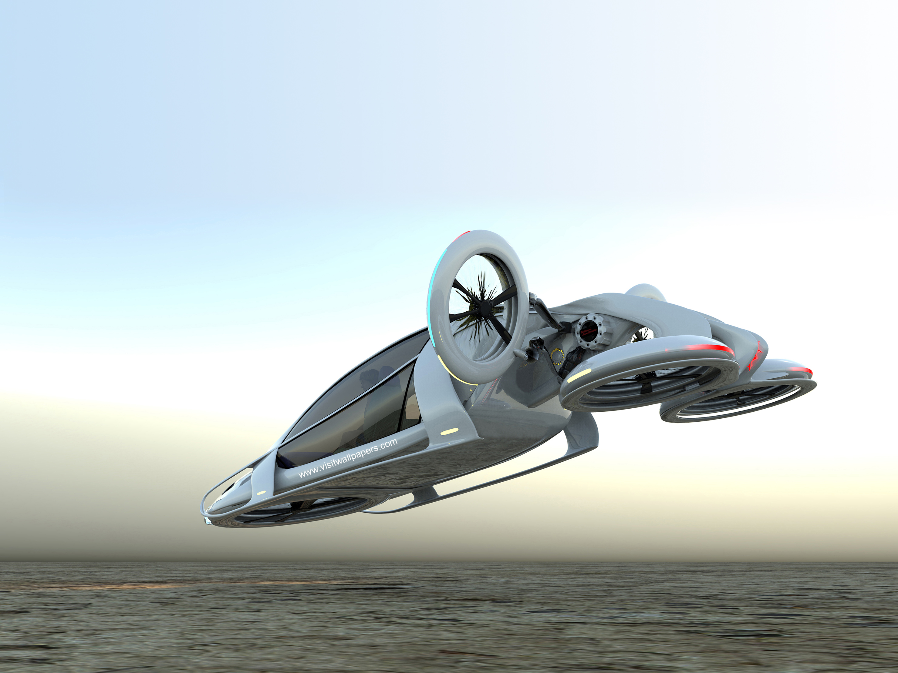 Cars_367Transportation of the future. The car flies above the ground, against the background of a foggy horizon, the concept of a flying car is Possible. side view. 3D illustration.